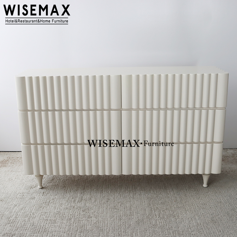 FRENCH CREAM STYLE HOME FURNITURE SOLID WOOD STORAGE CONSOLE CABINET WITH 6-DRAWERS FOR LIVING ROOM