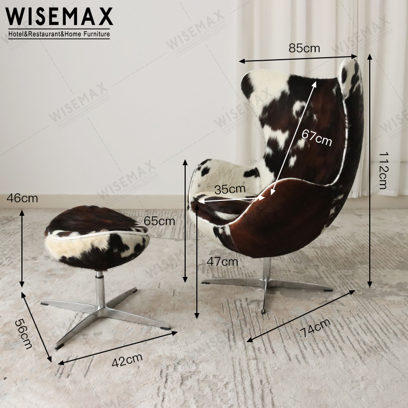 CLASSCIAL RECLINING COW LEATHER LEISURE CHAIR SWIVEL EGG SHAPE LOUNGE CHAIR WITH OTTOMAN SET