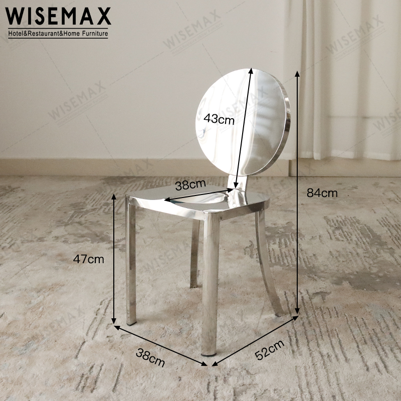 The entire chair is made of high-quality stainless steel. This chair can have arms or not. It is suitable for outdoor or indoor use as stainless steel material