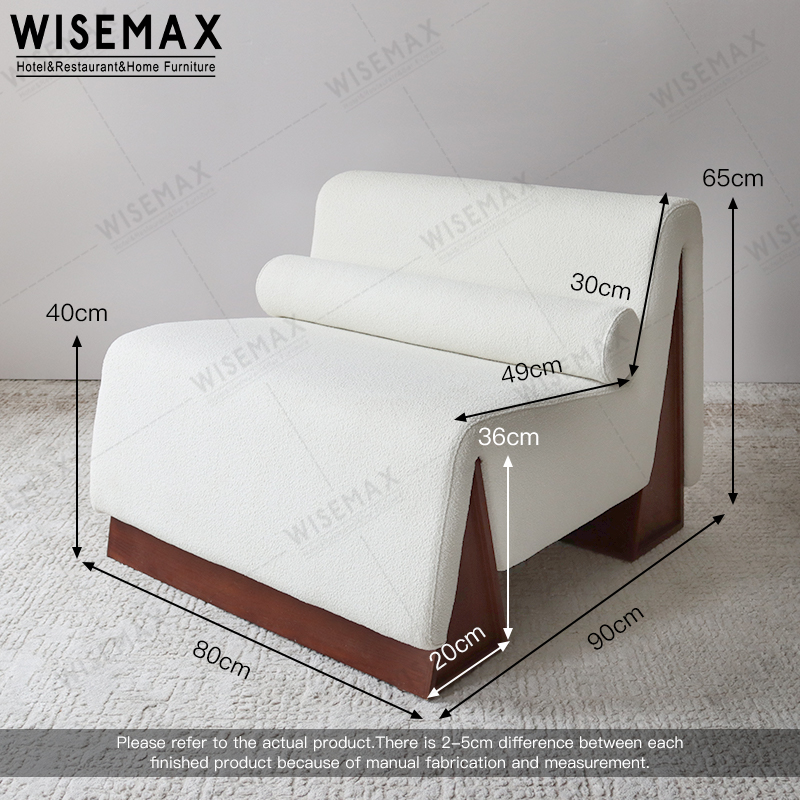 The backrest is in a strip shape to provide support for the human back. The seat cushion and backrest are made of high-density sponge and fabric, which is soft and comfortable. The base of the solid wood leisure chair adopts a triangular design.