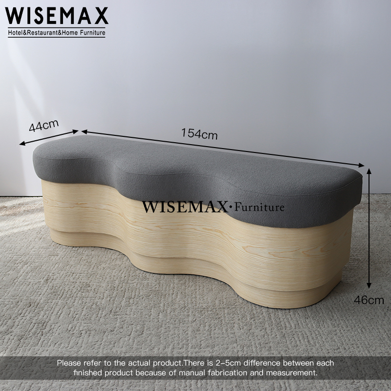 Fabric atop creates a soft, luxurious seating experience,while the sculptural wooden base adds a playful yet sophisticated touch.The bold and artistic fabric upholstered bench brings a unique wave-like design to your space.Perfect for those seeking to make a statement, it blends form and function, offering comfort and style in one eye-catching piece.