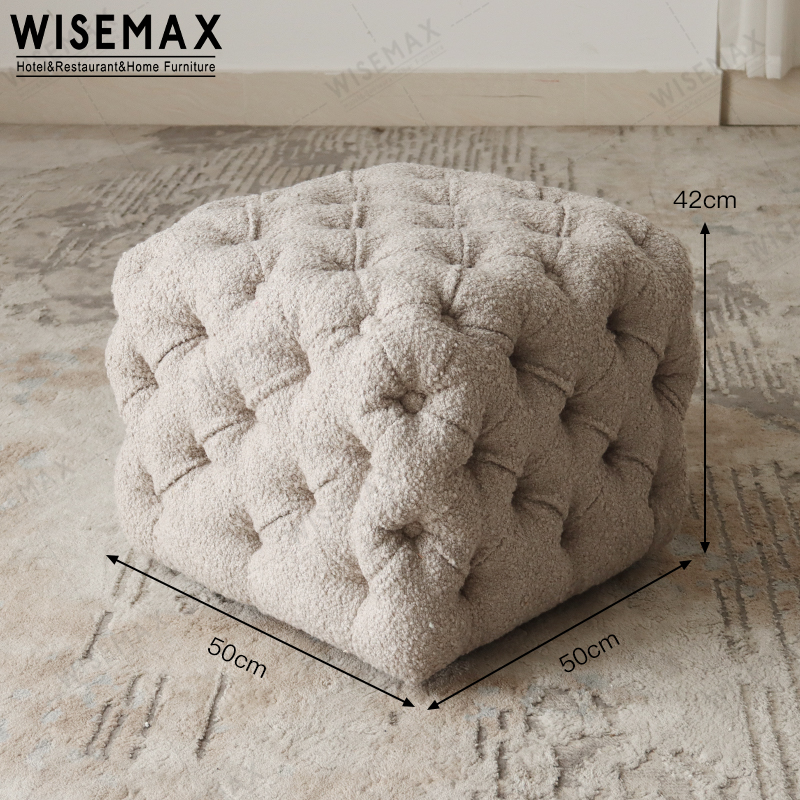 AMERICAN STYLE BUTTON TUFTED DIAMOND DESIGN SQUARE CUBE SHAPE POUF OTTOMAN STOOL FOR LIVING ROOM
