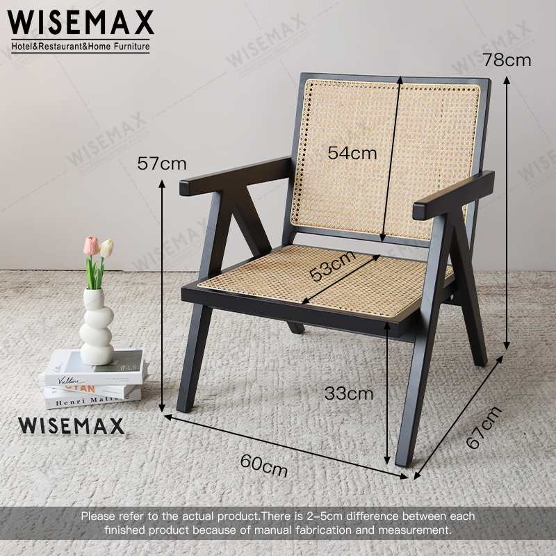 CONTEMPORARY SITTING ROOM FURNITURE BALCONY ASH WOOD BLACK CANE WICKER ARMREST LEISURE CHAIR