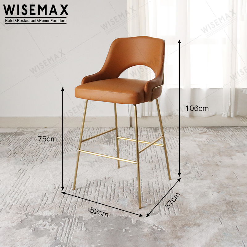 LIGHT LUXURY GOLDEN METAL CHROME BASE PU LEATHER HIGH BACK BAR STOOL KITCHEN ISLAND COUTER CHAIR