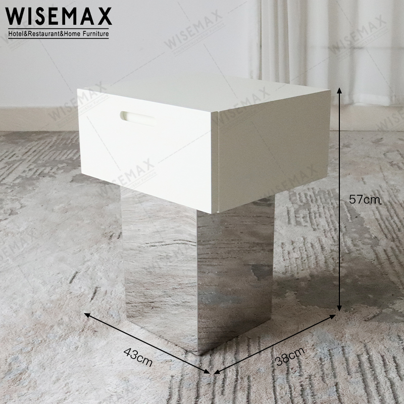 MODERN CUBE SHAPE SQUARE SMALL NIGHT STAND WOODEN STAINLESS STEEL BEDSIDE TABLE BEDROOM FURNITURE