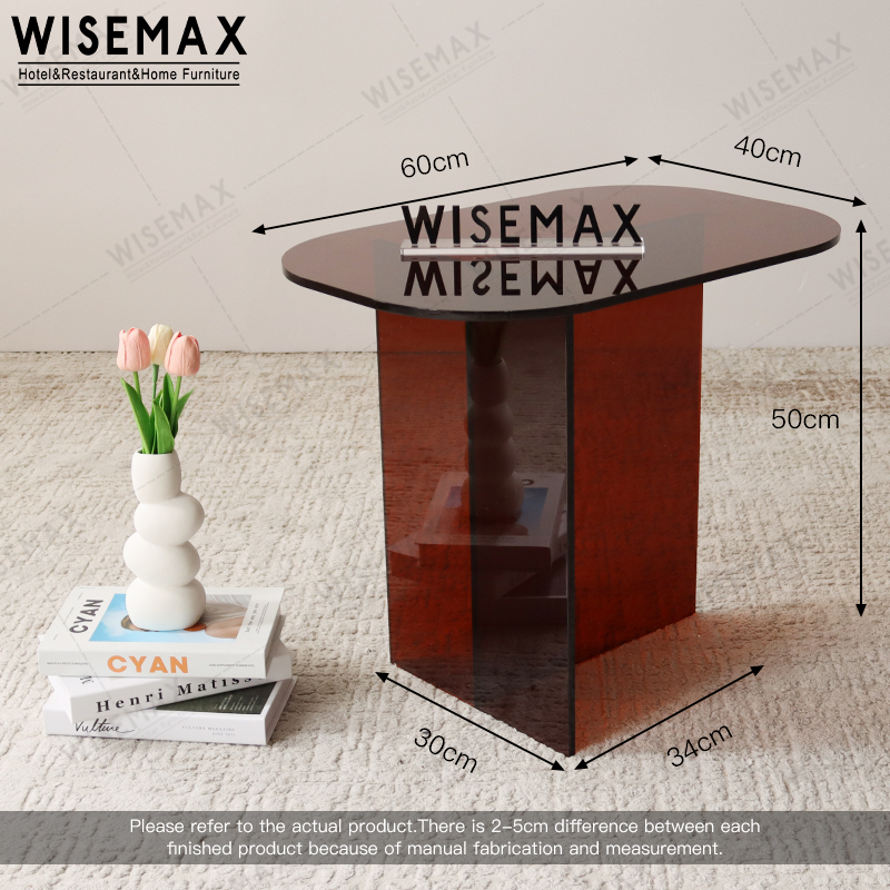 The coffee table is made of acrylic material, which is sturdy and wear-resistant.The tabletop of the coffee table is oval-shaped, simple and stylish.
