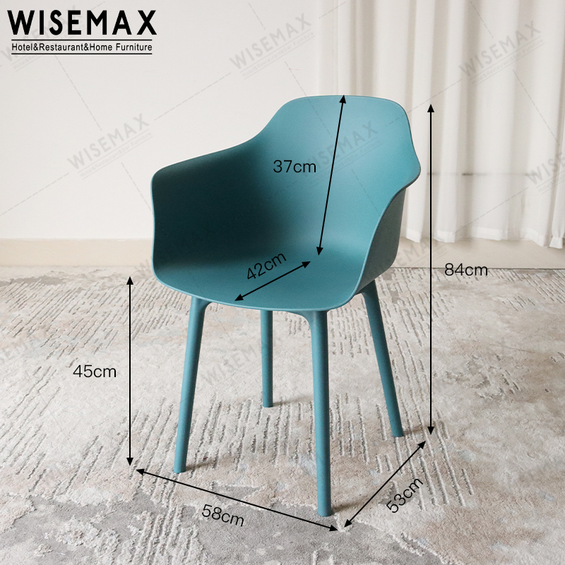 NORDIC SIMPLE BLUE PLASTIC DINING CHAIR WITH ARMREST FOR RESTAURANT CAFE SHOP OUTDOOR USE