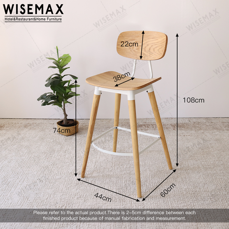 The backrest is curved to better fit the curve of the human back.The seat surface is made of plywood, which is stable and durable.The legs of the bar chair are made of metal, which is stable and not easy to shake.