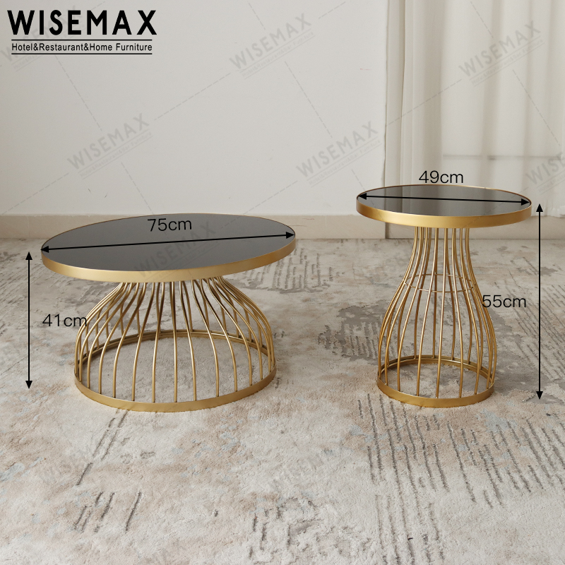 LIGHT LUXURY BOUQUET SHAPED GOLDEN COFFEE TABLE SET ROUND BLACK GLASS TOP CENTER TABLE LIVING ROOM