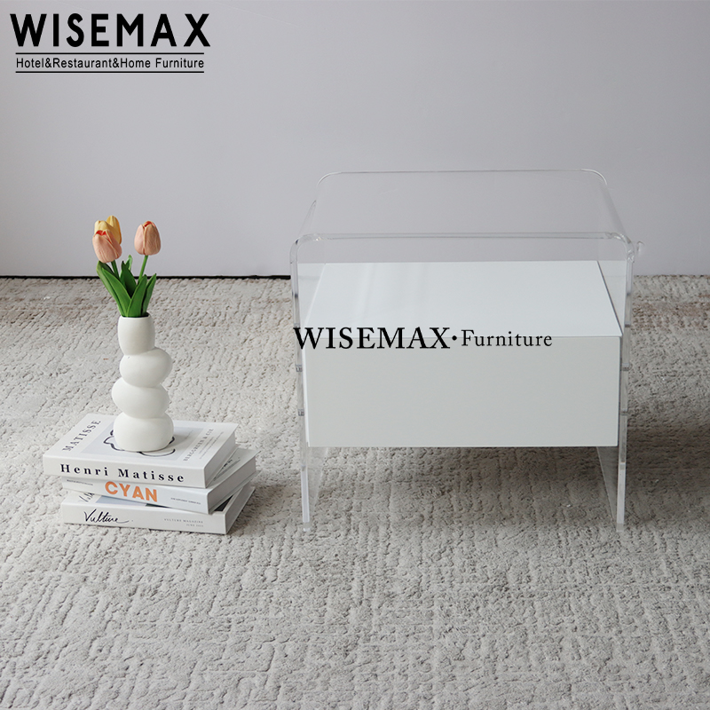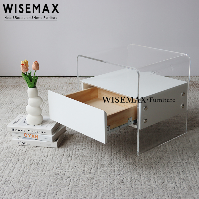 MODERN MINIMALIST BEDROOM FURNITURE ACRYLIC BEDSIDE TABLE CREATIVE WOODEN NIGHTSTAND FOR HOTEL