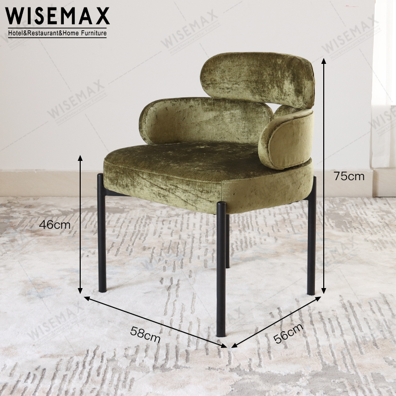 LIGHT LUXURY HALF ARM CURVED BACKREST VELVET ARMREST DINING CHAIR WITH METAL FRAME