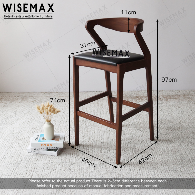 MODERN RESTAURANT FURNITURE SOLID WOOD BAR CHAIR HIGH BACKREST PU LEATHER SEAT WOODEN HIGH BAR STOOL