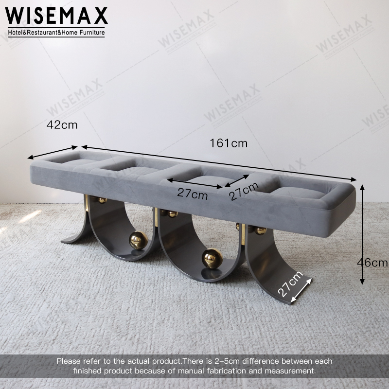 The seats are made of high-density sponge interior velvet fabric, which has good resilience.The base is decorated with gold stainless steel balls, making the bench luxurious and unique.