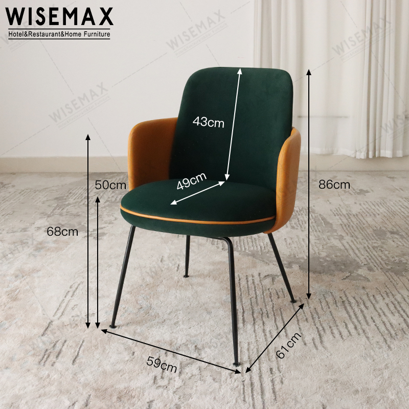 POSTMODERN RESTAURANT DINING CHAIR VELVET FABRIC DINING ARM CHAIR WITH CHROME LEGS