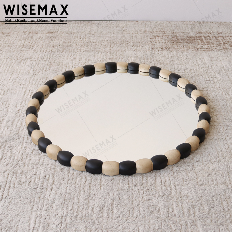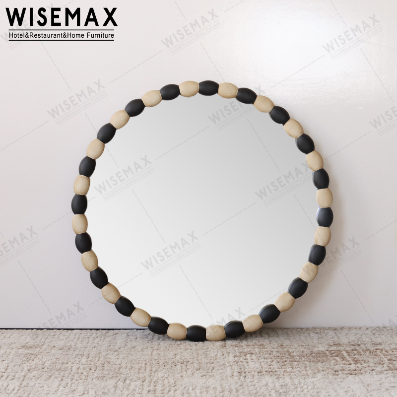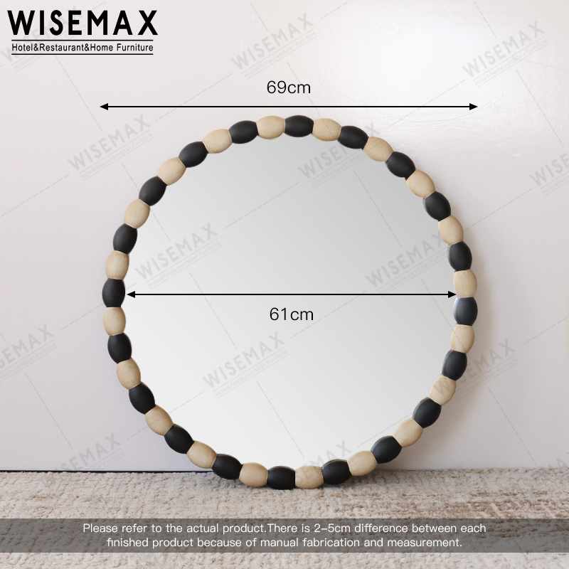 The mirror frame is made of solid wood in black and white color.Lovely round shape in Dia69cm suitable for home decoration. It can be console table mirror or living room wall mirror.