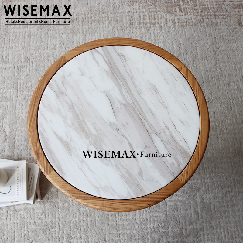 MEDIEVAL LIVING ROOM ROUND WOODEN SOFA SIDE TABLE VINTAGE MARBLE SMALL CORNER TABLE FOR APARTMENT