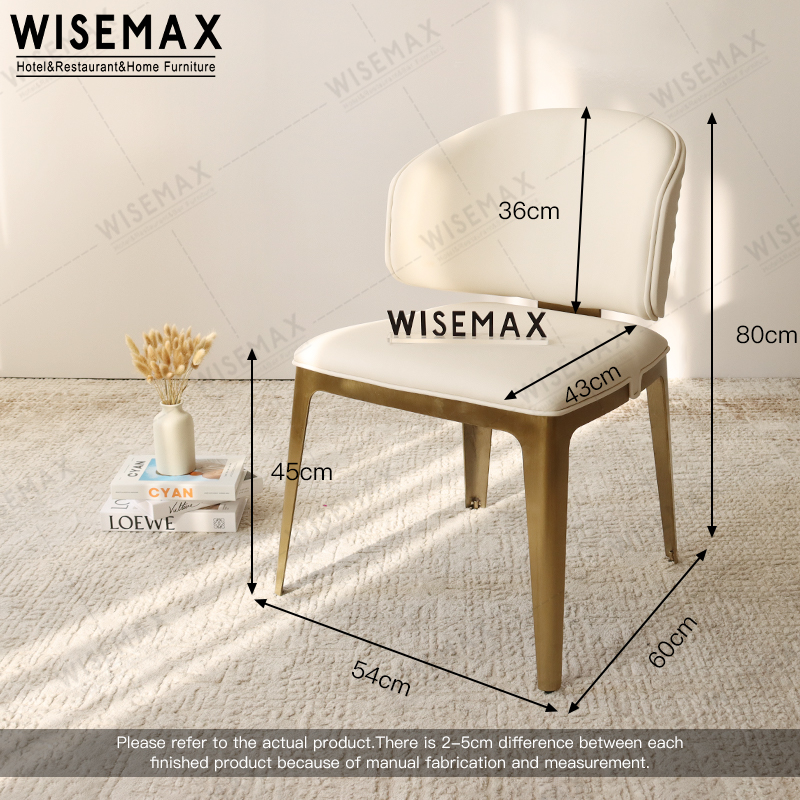 The curved design of the chair back is more comfortable for the human back. The seat cushion is made of high-density sponge and leather, making it comfortable to sit on. The stainless steel dining chair frame is sturdy and luxurious.
