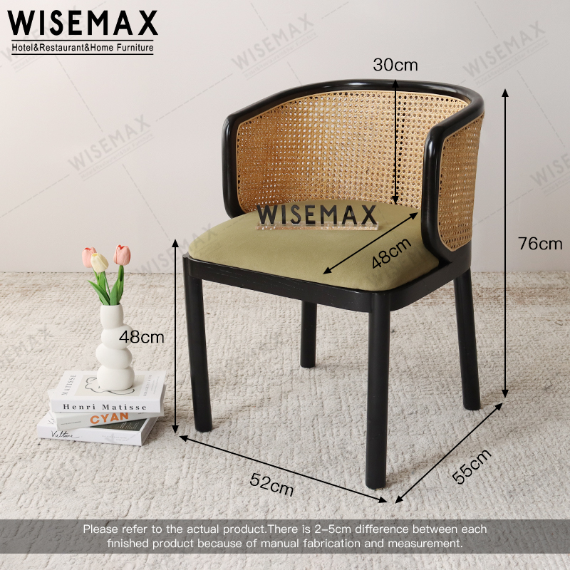Curved hand made woven natural rattan backrest is cool can comfortable.High density sponge uphosltery velvet fabric seat is soft, the fabric color change is available.