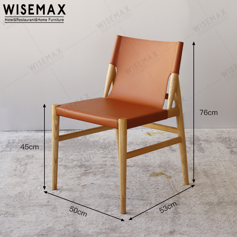 SCANDINAVIAN WOOD AND SADDLE LEATHER DINING CHAIR FOR HOME DINNING RESTAURANT SILLAS DE COMEDOR
