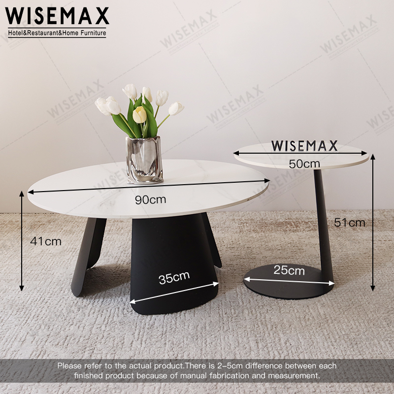 MODERN MINIMAL ROUND SINTERED STONE COFFEE TABLE SET WITH METAL BASE FOR LIVING ROOM