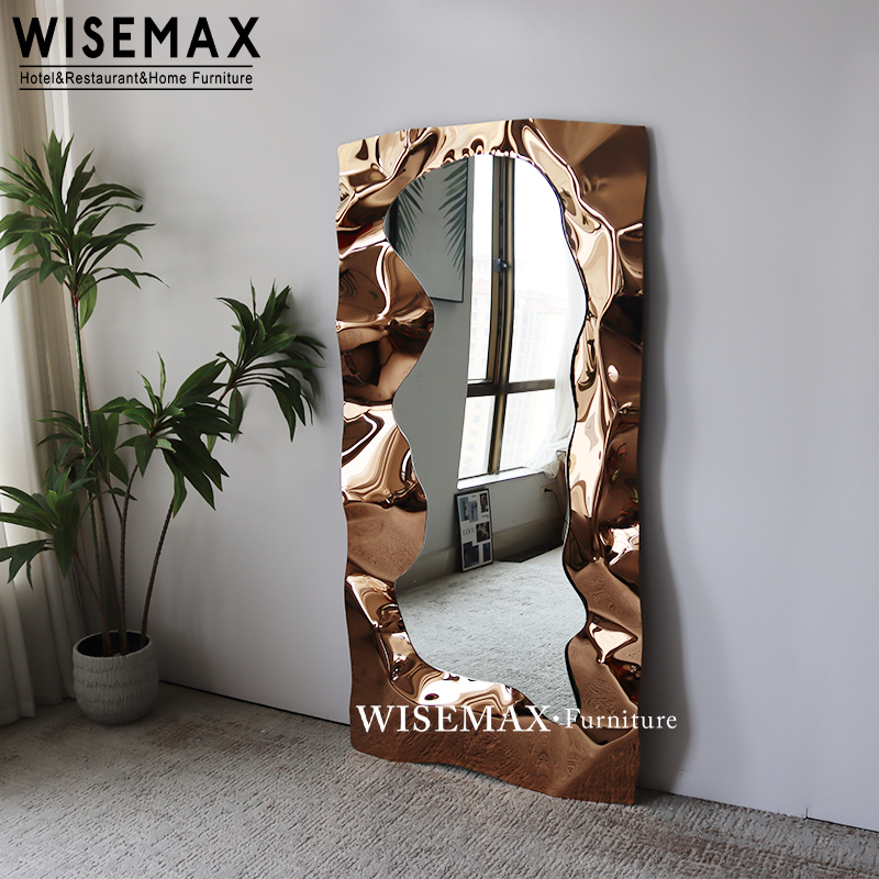 NEW DESIGN LUXURY ARTISTIC DECORATIVE FASHION WAVY FLOOR MIRROR STAINLESS STEEL DRESSING MIRROR