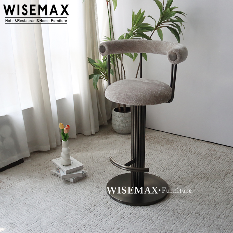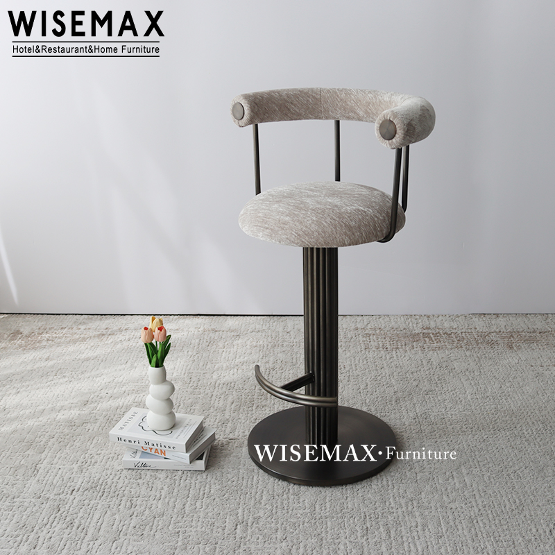 MINIMALIST BAR FURNITURE METAL FABRIC UPHOLSTERY HIGH BAR COUNTER CHAIR UNIQUE CAFE CHAIR FOR HOTEL
