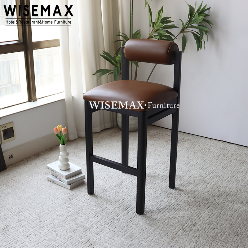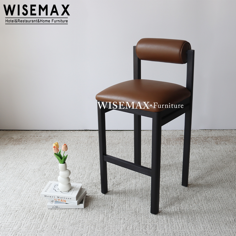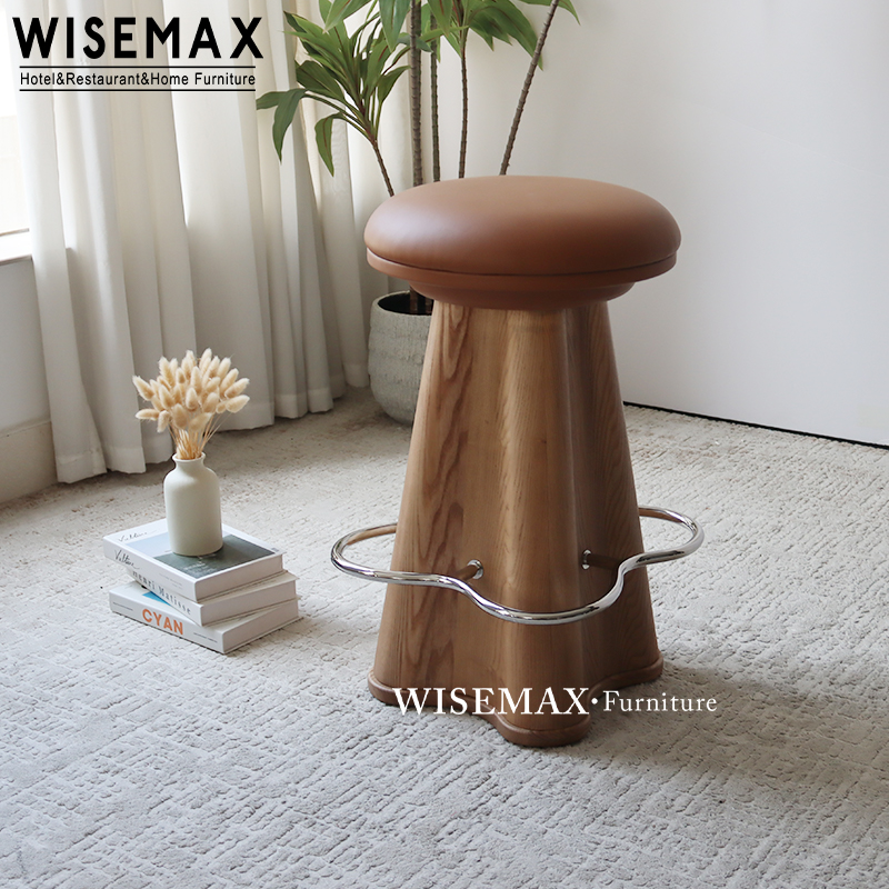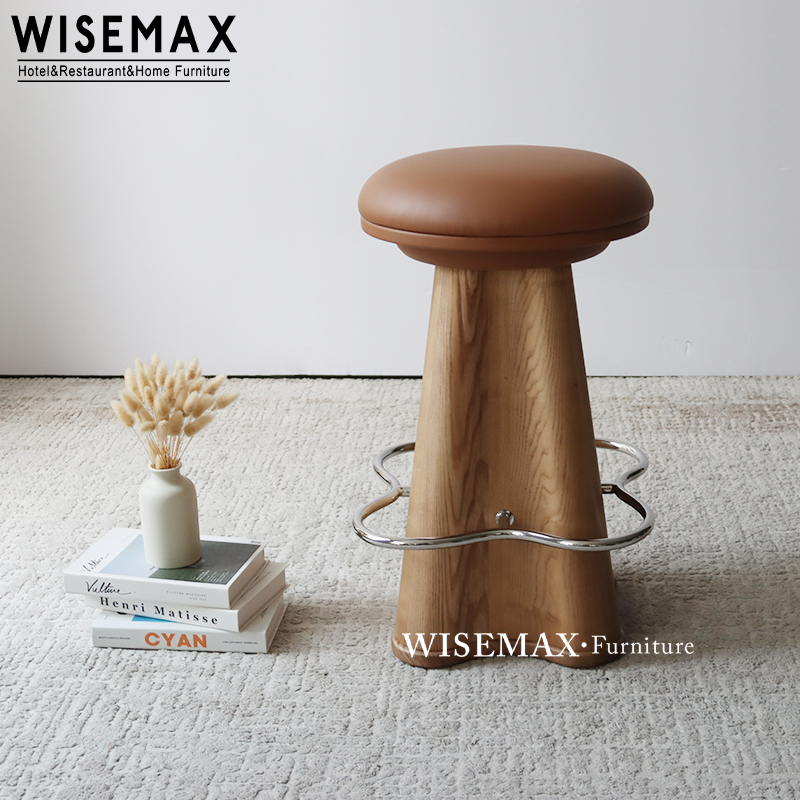 NORDIC CREATIVE HOTEL FURNITURE LEATHER UPHOLSTERED HIGH BAR STOOL SOLID WOOD COUNTER CHAIR FOR CAFE