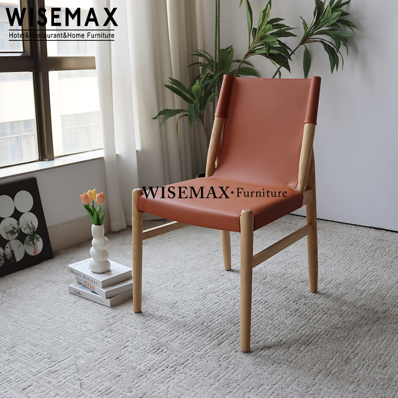 NORDIC DESIGN RESTAURANT FURNITURE SOLID WOOD BACKREST DINING CHAIR SADDLE LEATHER CHAIR FOR HOTEL