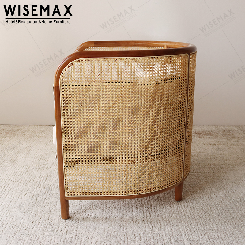 SCANDINAVIAN ASH WOOD SINGLE RATTAN WICKER SOFA ARM CHAIR HOTEL ACCENT LEISURE CHAIR