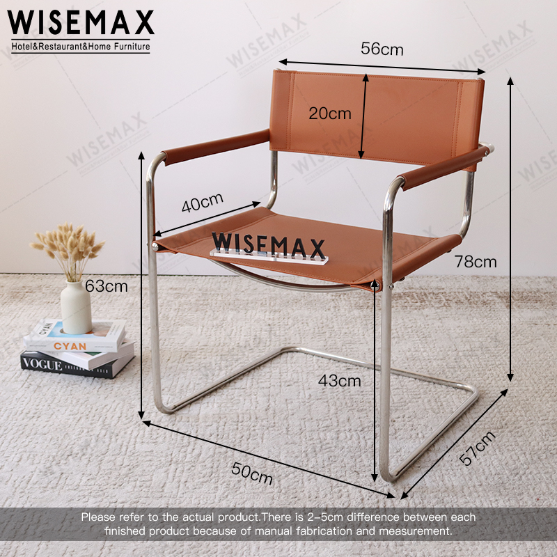 MEDIEVAL BAUHAUS SADDLE LEATHER STAINLESS STEEL ARM ACCENT LEISURE DINING CHAIR FOR HOME CAFE SHOP