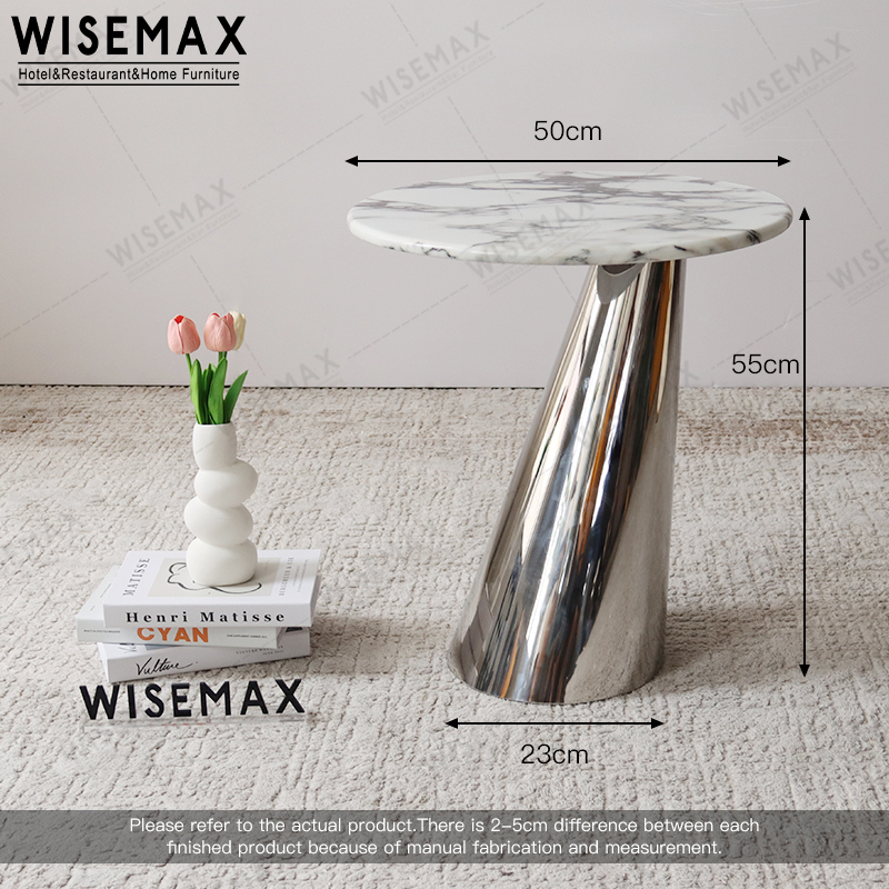 The marble top is natural marble, it can customized to oter different color. The table base is made of stainless steel in silver color.If stainless steel color customization is available for us.