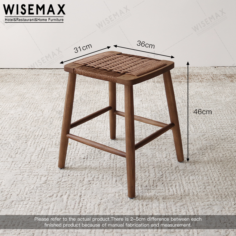 The seat surface of the stool is made of hand-woven rope, which is fine and breathable, making it not tiring to sit for a long time. The frame is made of solid wood, which is strong and durable.
