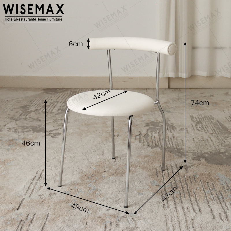The chair frame is made of electroplated solid metal. High quality sponge interior PU leather seats and backrest. The sample is white and other colors can be customized