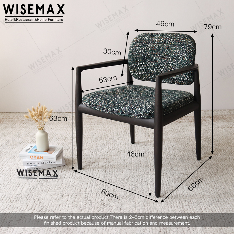High density sponge upholstery fabric seat and backrest is comfortable.The armrest is formed in one piece with smooth and rounded edges.The dining chairs are made of solid ash wood, which is strong and stable.
