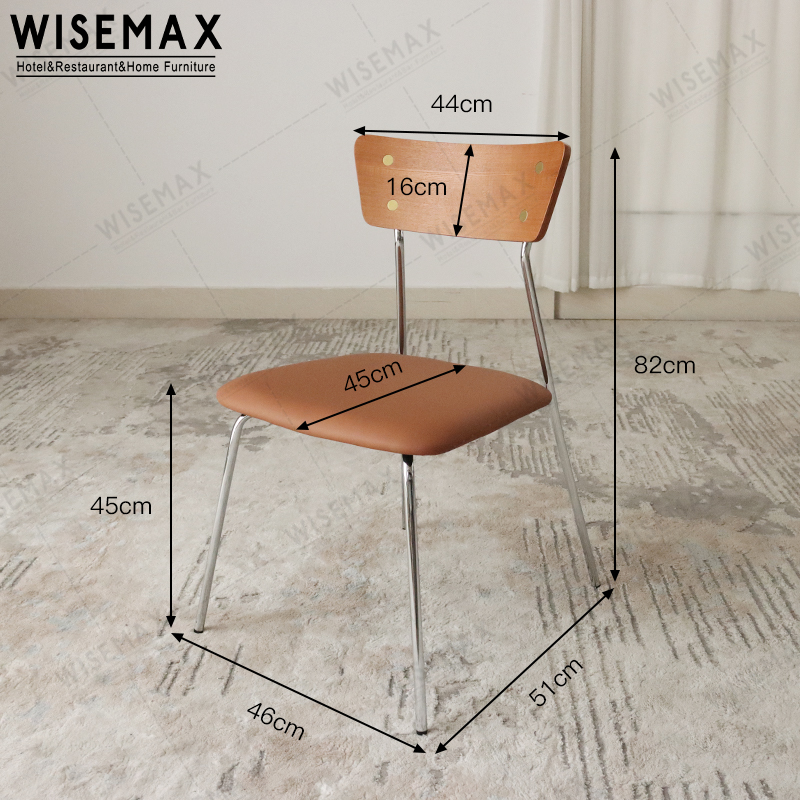 INDUSTRIAL STYLE PLYWOOD BACKREST LEATHER SEAT DINING CHAIR WITH CHROME METAL LEG CAFE RESTAURANT