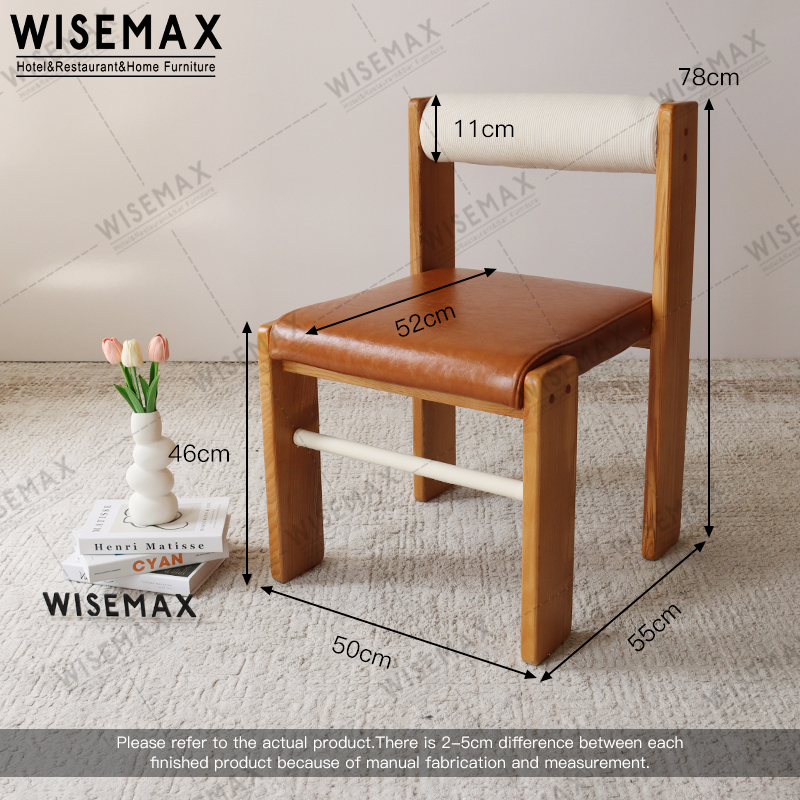The backrest of the chair is cylindrical, simple and fashionable.The overall frame of the chair is made of ash wood , which is stable and durable.The chair cushion is filled with elastic sponge, making it comfortable to sit on.